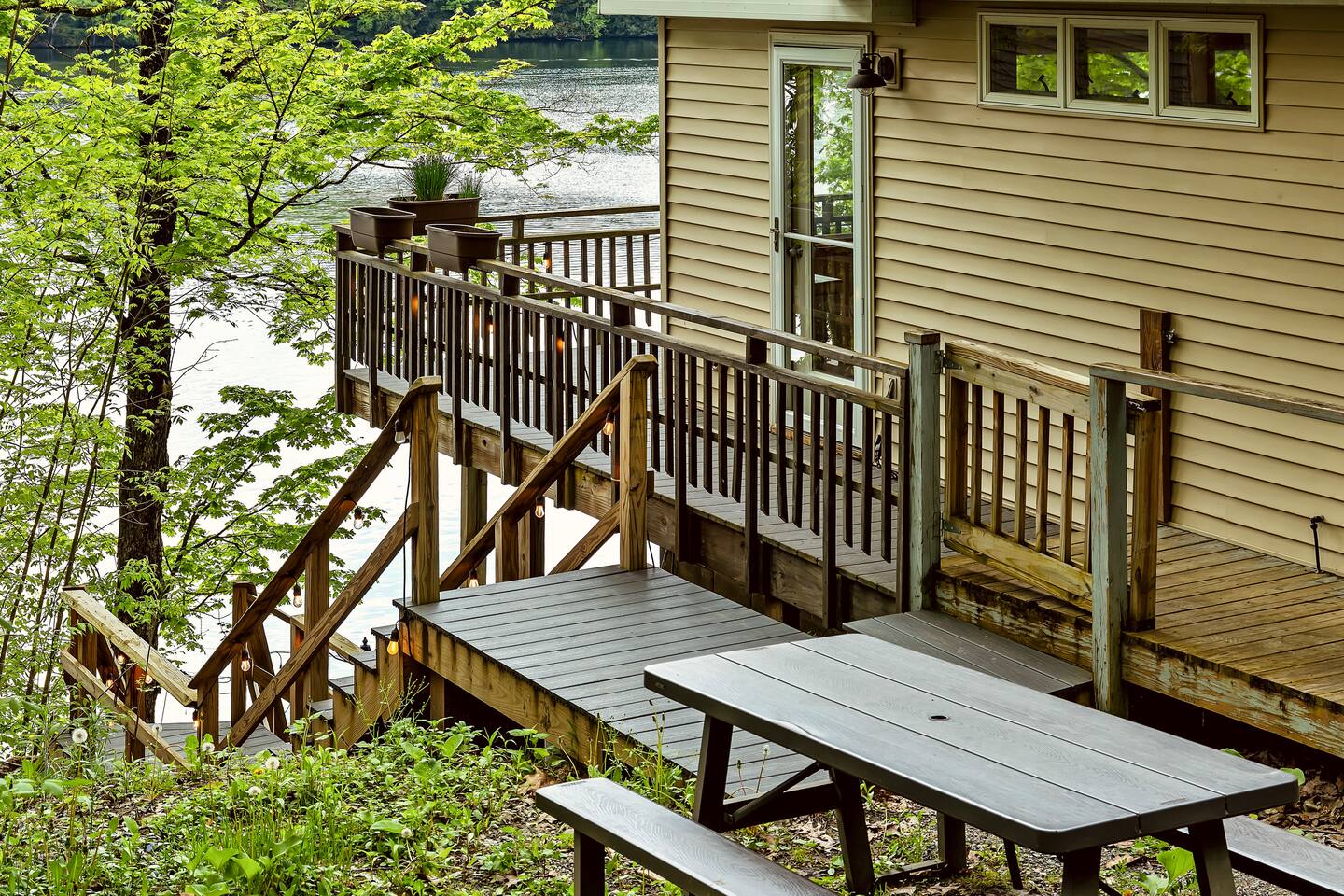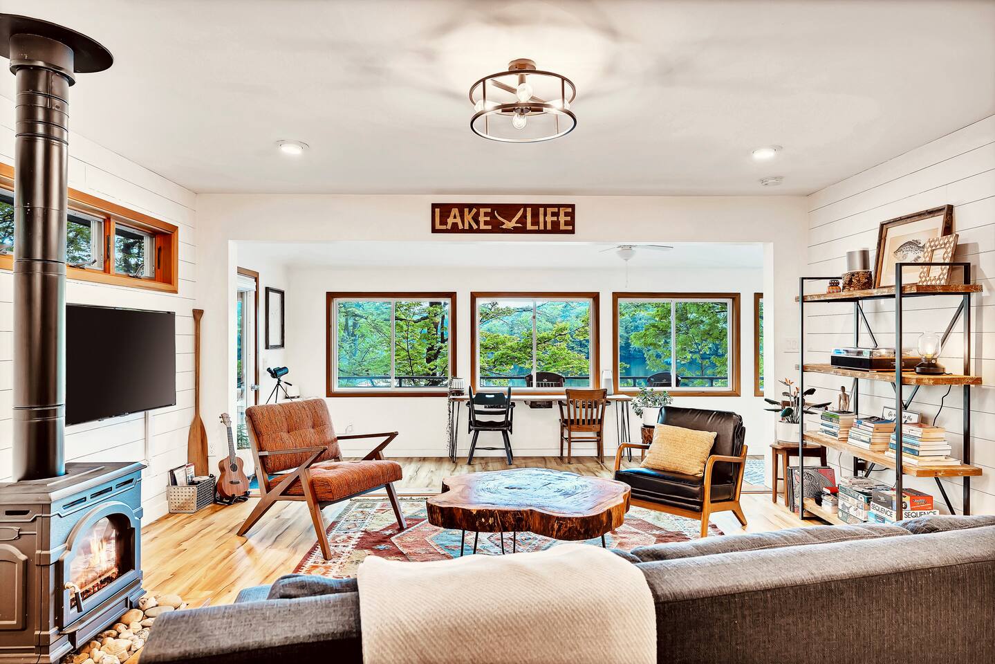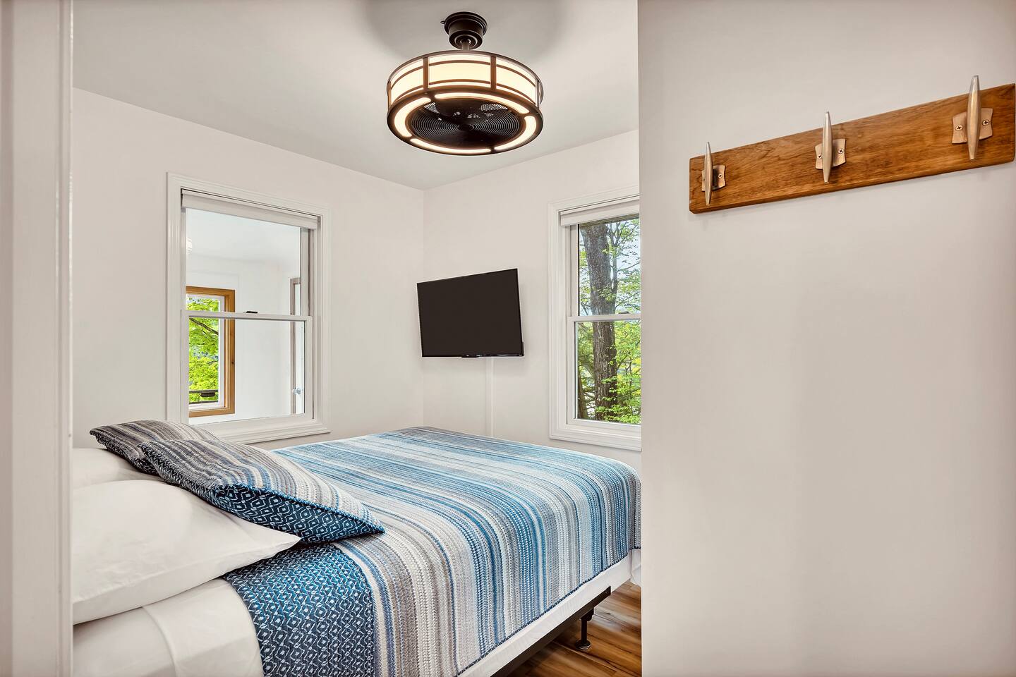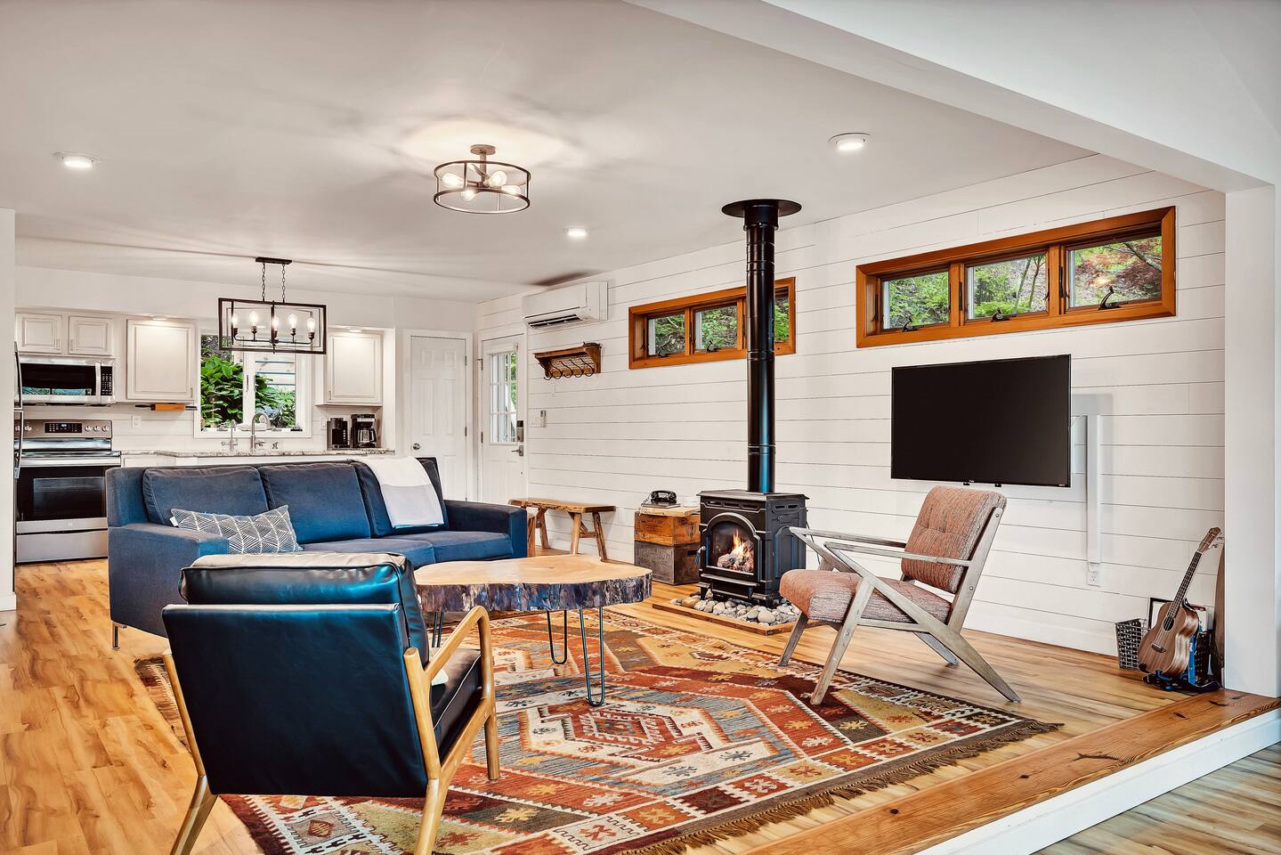 Three Pines is on a secluded gravel road - far away from road noise. Unwind and relax in adirondack chairs by the water or have morning coffee on the deck. There's strong high speed wifi and a 4K television if you are in the mood for entertainment.