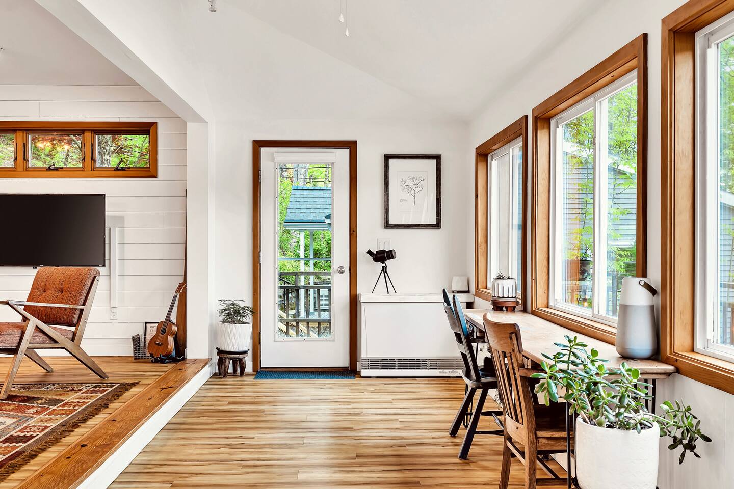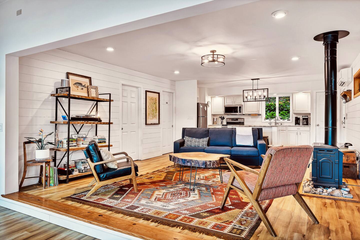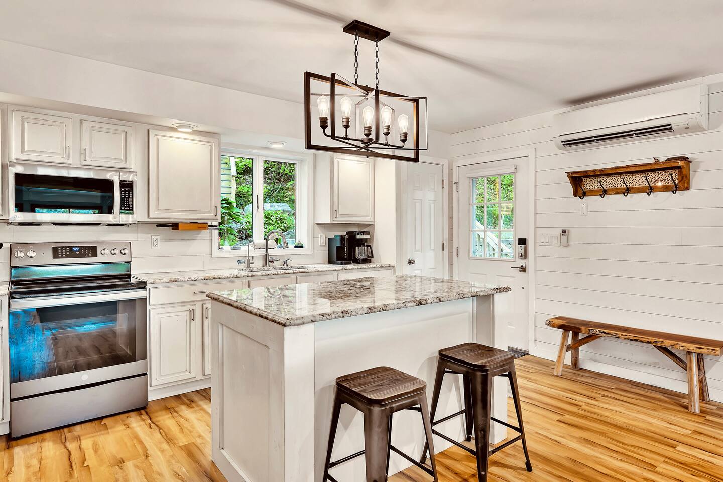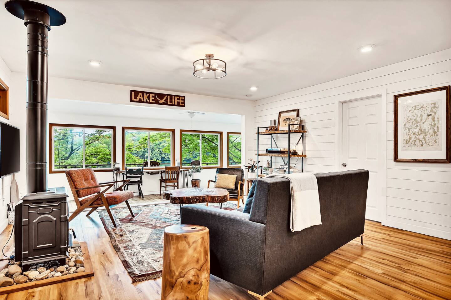 Three Pines is on a secluded gravel road - far away from road noise. Unwind and relax in adirondack chairs by the water or have morning coffee on the deck. There's strong high speed wifi and a 4K television if you are in the mood for entertainment.